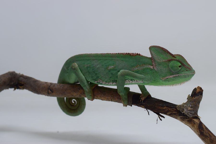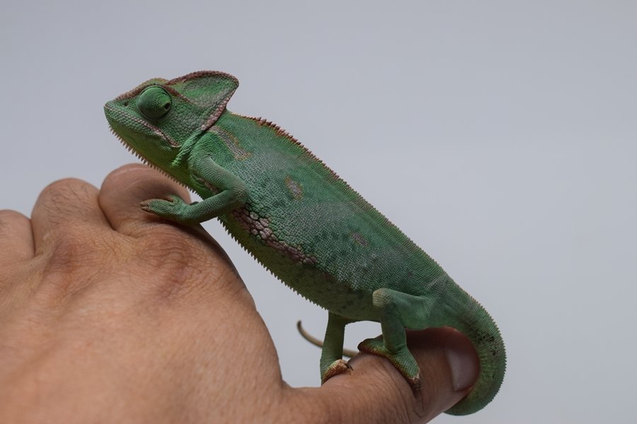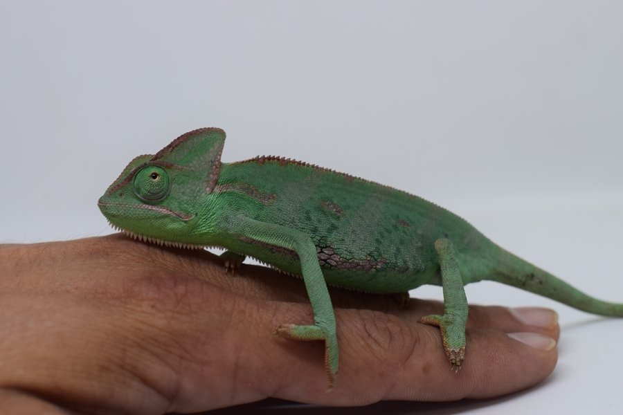 Chamaeleo calyptratus je vrsta kameleona koja nam dolazi iz Jemena i Saudijske Arabije. Mužjaci su pretežno veći od ženki. Veličina odraslog mužjaka kameleona je do 50cm a ženke do 35cm. Što se tiče boja mužjaci su svjetliji s više definiranih pojasa žute ili plave boje koje se nadziru. Ženke su zelene s bijelom, narančastom ili žutom bojom. Životni vijek im je od 5-8godina.
