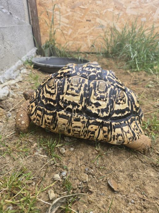 Prodajem dvije ženke pardalis preko 30cm i 5kg te jednog mužjaka od 23cm. Kornjače su potpuno zdrava, čak i jaja nose. Prodajem ih zbog nedostatka vremena i prostora. Posjeduju papire od uzgajivača.