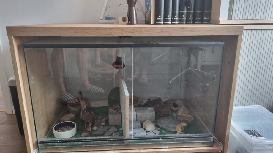 Leopard gekon star 4 godine, terarij i drugi leopard gekon prodaju se odvojeno. Ako se uzima sve u kompletu moguća korekcija cijene.