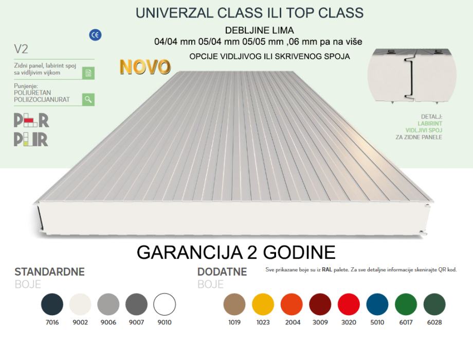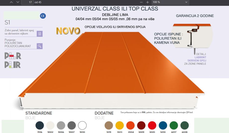 CIJENE PANELA UNIVERZAL KLASA 50 i 100 mm (debljina lima 05/04 mm)
