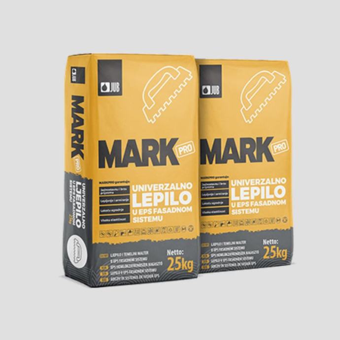 Ova pročišćena smjesa cementnog morta u obliku praha za lijepljenje toplinsko-izolacijskih ploča od stiropora i izradu armirajućeg sloja toplinske izolacije koristi se prije nanošenja MARKpro dekorativnih žbuka.