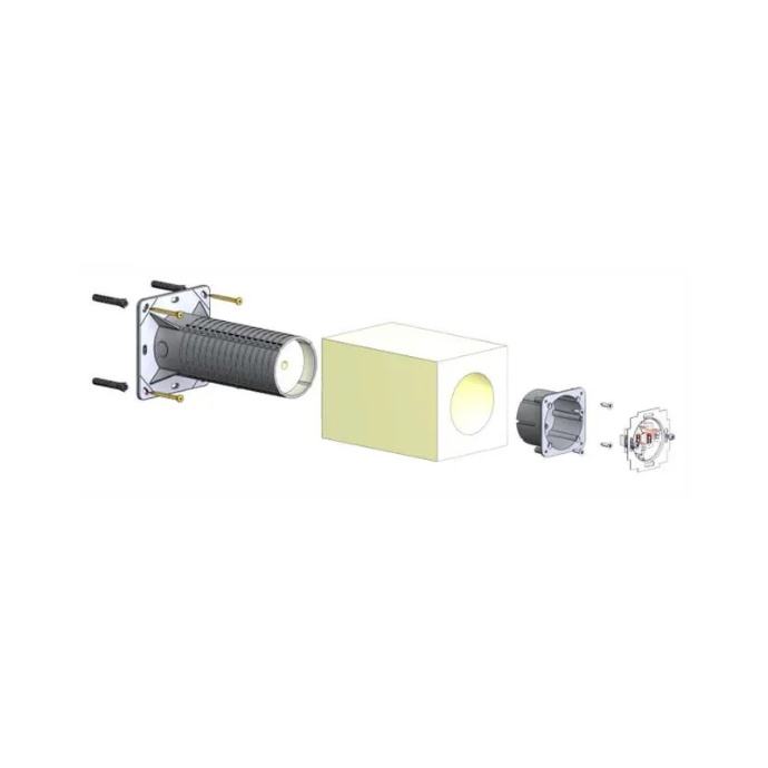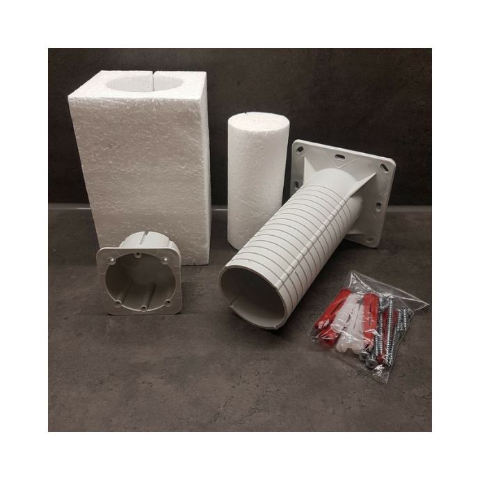 Za ugradnju uređaja u izolirane fasade zgrada debljine 50 - 300 mm. Eliminira stvaranje toplinskih mostova. U pakiranju su kvalitetni tipli i vijci za montažu, kod montaže na grublju žbuku preporučljivo je brtviti uređaj silikonom. Robusna konstrukcija.