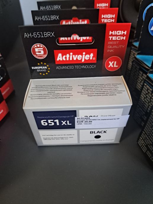 Features Certification: ISO 9001, ISO 14001, ISO 27001, ISO 28000 Compatibility: HP DeskJet Ink Advantage: 5575. HP Deskjet: 5645. HP OfficeJet: 202, 202C, 252. OEM code: HP 651 C2P10AE Ink type: Pigment-based ink Brand compatibility: HP Black ink page yield: 720 pages Supply type: Single pack Black ink volume: 20 ml Cartridge capacity: Standard Yield Black ink cartridges quantity: 1 Type: Compatible Printing colours: Black Replacement for: HP 651 Black ink type: Pigment-based ink Product description: Activejet Ink Cartridge Quantity per pack: 1 pc(s) Other features Product description: Activejet Ink Cartridge Compatible ink types, supplies: 651 C2P10AE Technology: Refurbished Page yield footnote: +20% print more than OEM Class: A+ Version: Premium Technical features: Cartridge with chip Weight & dimensions Package type: Box