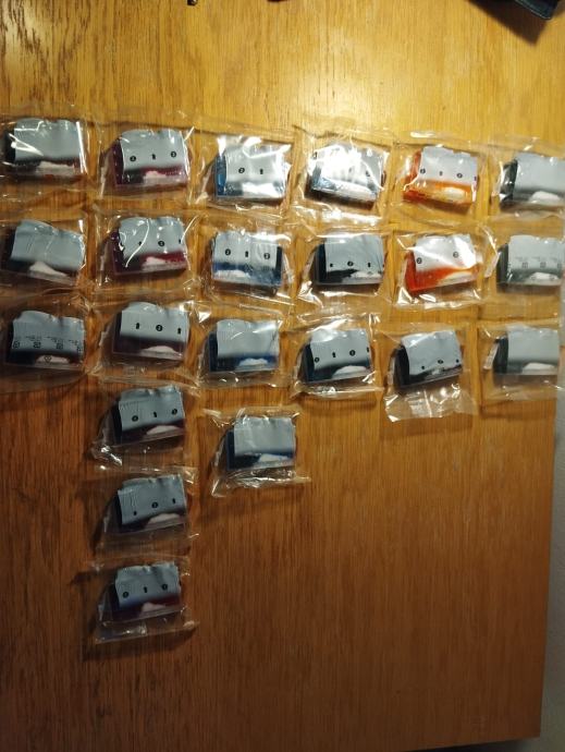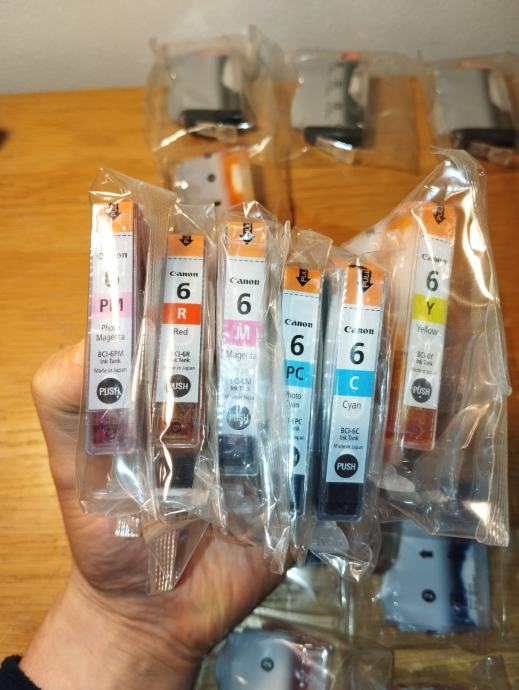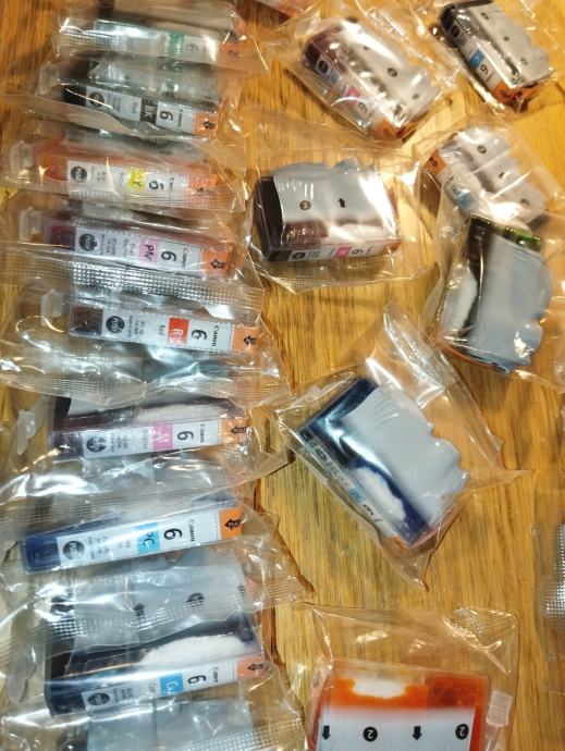 Prodajem 22 Canon tonera, od kojih su: 4x PC, 3x C, 3x G, 3x R, 3x M, 3x PM, 2x Y i 1x BK. Toneri su potpuno novi i nekorišteni te ih prodajem isključivo u kompletu. Cijena jednog takvog tonera u trgovini iznosi preko 10 €, a ja ih sve zajedno prodajem za samo 20 €, jer mi više nisu potrebni.