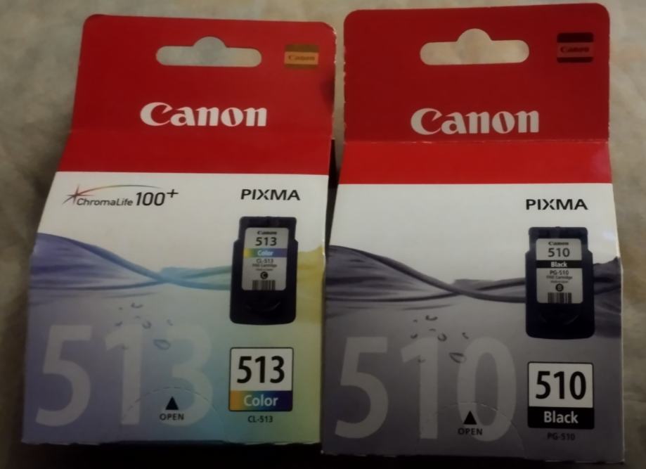 Prodajem 2 originalne tinte za printer Canon MP250 (1 crna, 1boja), nove, neotvorene. Crna (510) je 9 ml po cijeni od 15eura, dok je boja 13ml po cijeni od 25eura. Moguća je pojedinačna prodaja (svaka tinta zasebno), a ukupna cijena je 50 eura. Cijena je fiksna , bez zamjena. Ponude putem poruka Njuškala.