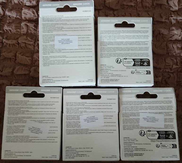 Neotvorene (zapakirane), ostale jer mi se pokvario printer (glava, Canon MX-885, prodajem za dijelove, 30€)