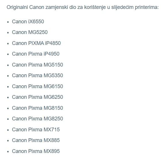 Originalne Canon tinte (Made in Japan) za mnoge Canon InkJet printere (popis na slici).