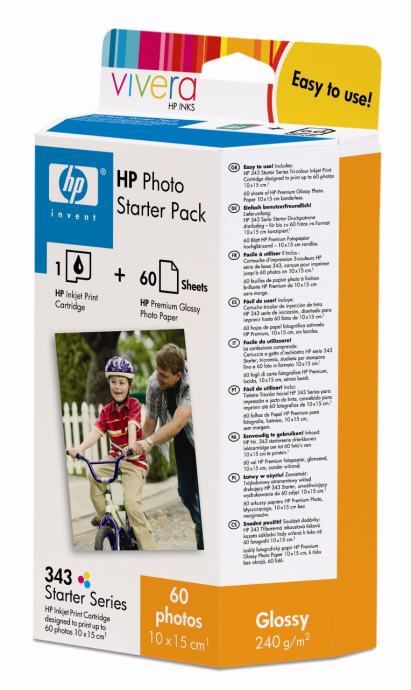 HP 343 Series Photo Starter Pack = HP 343 Tri Color Ink + 60 sht / 10 x 15 cm (Q7948EE)