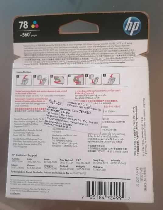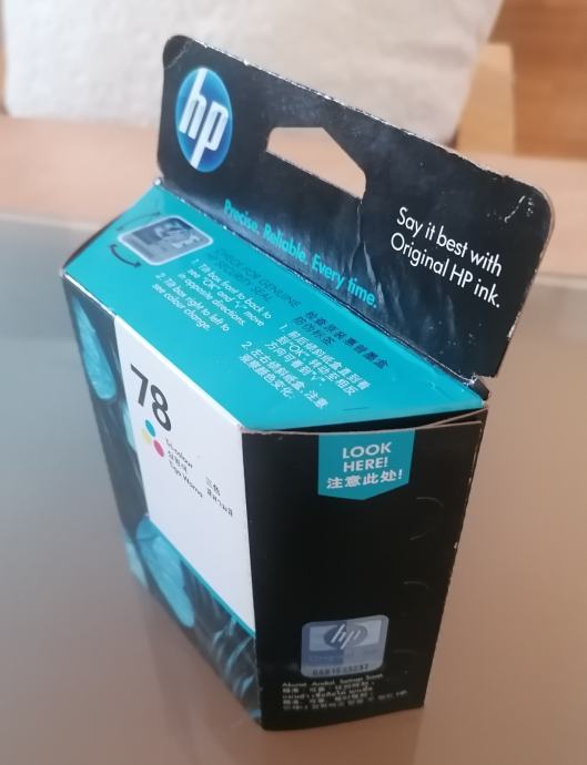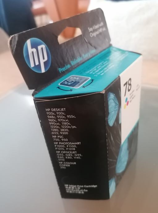 Prodajem original zapakiranu HP 78 trobojnu tintu. Tinta je pogodna za HP DESKJET 920c, 930c, 948c, 950c, 955c, 960c, 970cxi, 990cxi, 1180c, 1220c, 1220c/ps, 1280,3820,6122,9300; HP PSC 750, 950; HP PHOTOSMART P1000, P1100, P 1215, P1218; HP OFFICEJET G55, G85, G95, K60, K80, V40, 5110; HP COLOUR COPIER 290.