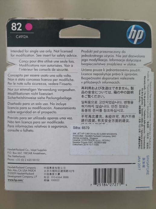 HP Ink Jet C4912A No.82 Cartridge DJ800 Magenta 43€ po komadu. Komada 2.