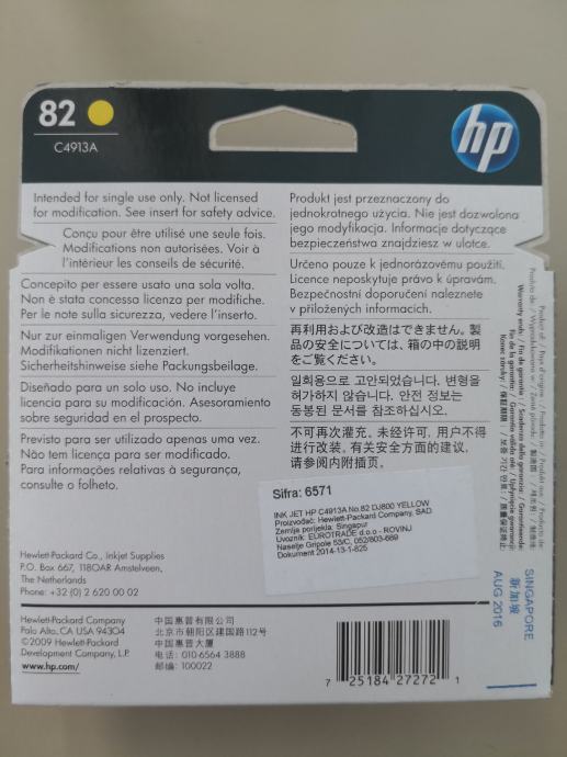 HP Ink Jet C4913A No.82 Cartridge DJ800 Yellow 43€ po komadu. Komada 3.
