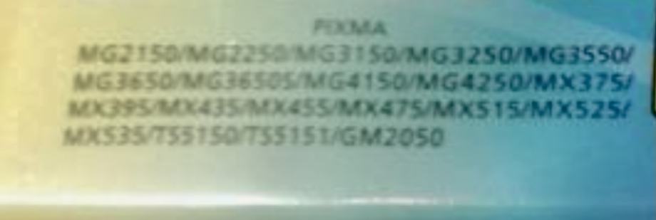 Pixma MG-2150, MG-2250, MG-3150, MG-3250, MG-3350, MG-4150, MG-4250, MX-375, MX-395, MX-435, MX-455, MX-475, MX-515, MX-525, MX-435