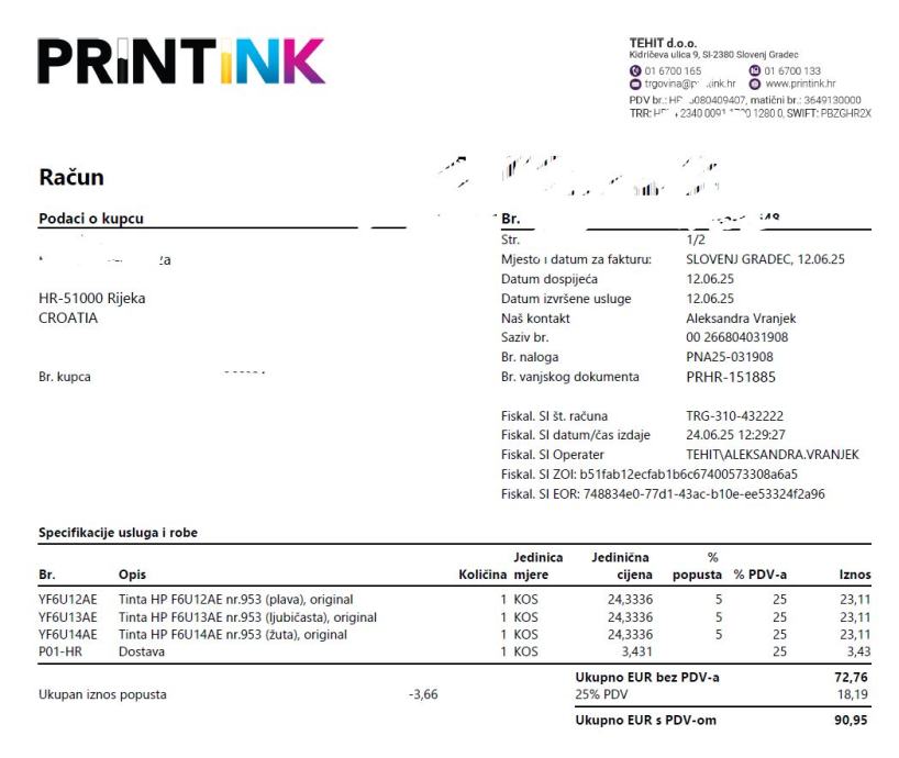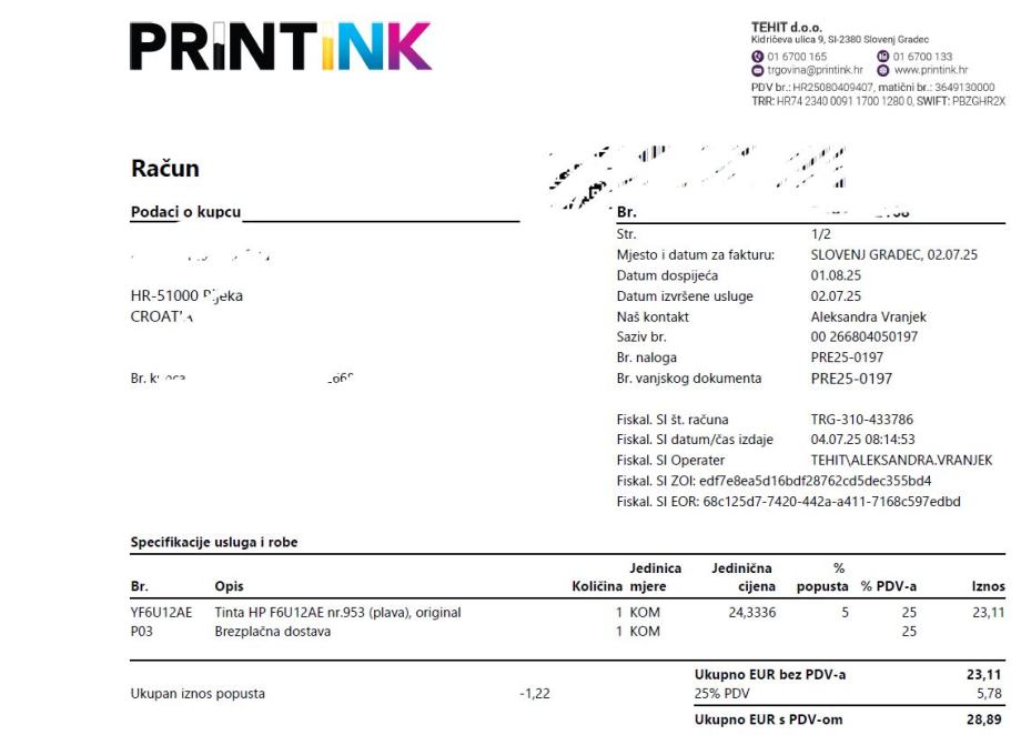 Druga plava tinta je kupljena da se dijagnosticira dali je problem kvara u tinti ili glavi printera.
