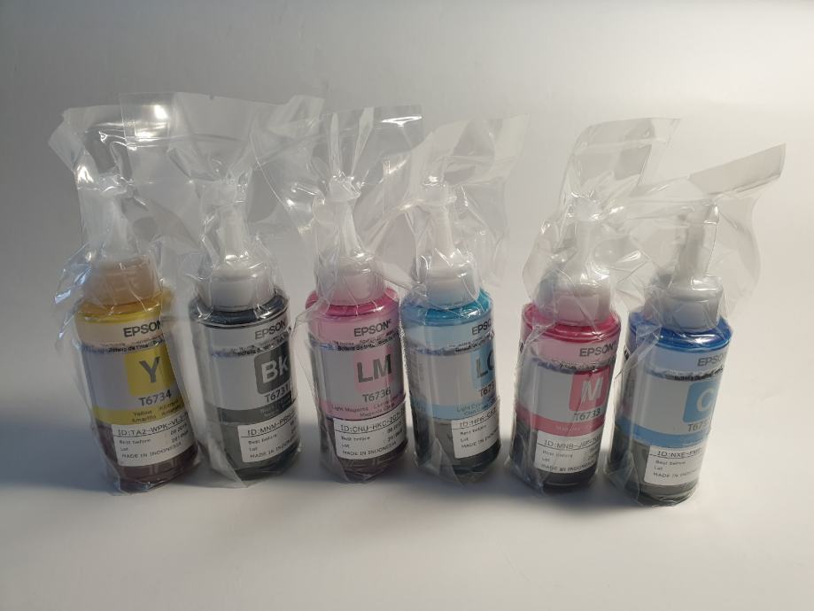 Prodajem komplet originalnih tinti za Epson Ecotank printere. Komplet čine bočica crne, crvene, plave, žute, svjetlocrvene i svjetloplave boje. Tinte su originalno zapakirane i prodaju se isključivo u kompletu.