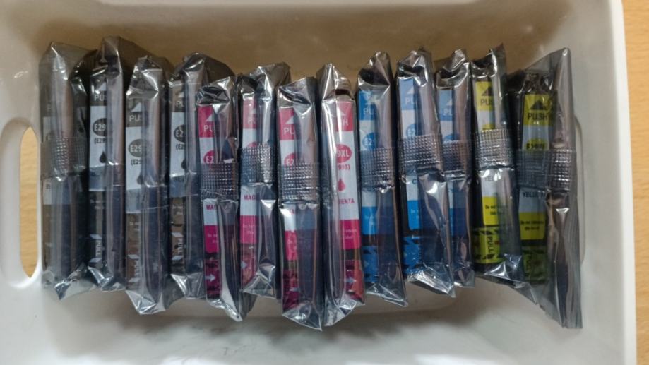 Tinta u boji za Epson pisače. Kompatibilna je sa uređajima Epson XP-235, 332, 335, 432 i 435. Tinta je zamjenska. Cijena je svih 13 komada. Ostala zaliha nakon kvara printera.
