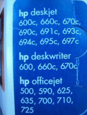 HP Deskjet 600, 660, 670, 672, 680, 690, 692, 693, 694, 695, and 697 Printers, HP Deskwriter 600, 660, 680, and 694 Printers, HP PSC 370 and 380, HP Officejet 500, 520, 570, 580, 590, 600, 610, 630, 635, 700, 710 and 720 Printers, HP Fax 910 and 920