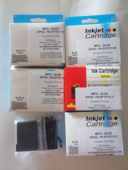 Neraspakirane dvije crne tinte EPT0711B, te po jedna plava EPT0712C, crvena EPT0713M i žuta EPT0714Y.