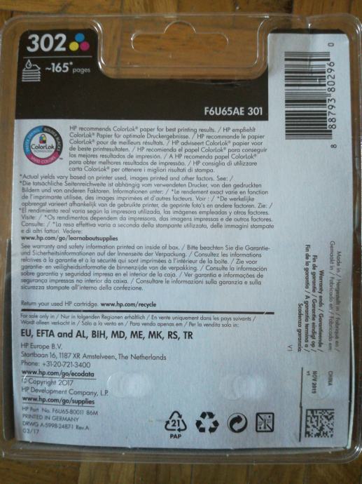 Toner hp 302 tri-colour(boja) za HP Deskjet 1110, 2130, 3630 series.
