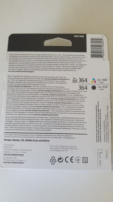 HP 364 (N9J73AE), originalna tinta, crna + 3 druge boje, ukupno = 4 x 3 ml.