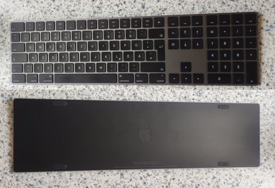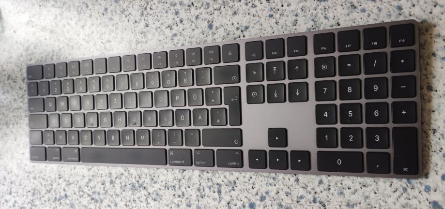 Apple Magic Keyboard Numeric Tipkovnica QWERTZ, crne boje, u odličnom stanju. Radi preko bluetootha, s pripadajućim USB-A lightning kablom. Sve tipke testirane i savršeno rade.
