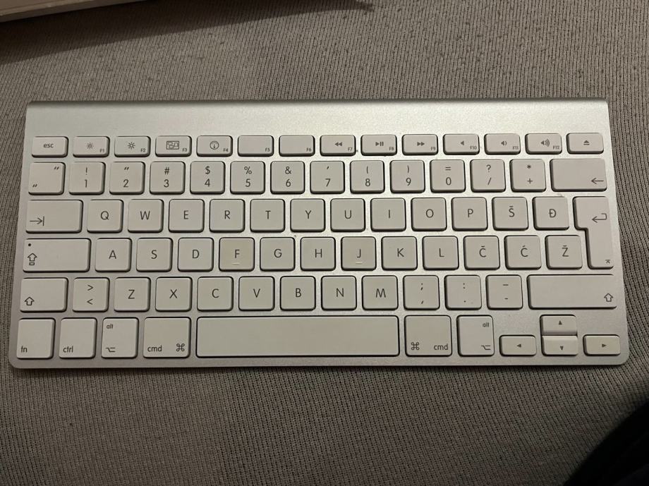Prodajem Apple bežičnu tipkovnicu u aluminijskoj izvedbi s bijelim tipkama. (Hrvatska slova)