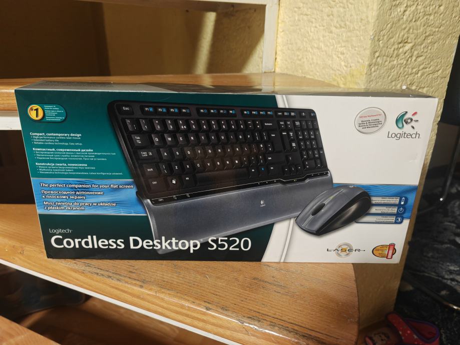 Prodajem neotpakirani Logitech Cordless Desktop S520 - bežična tipkovnica s podpiračem i laser miš.