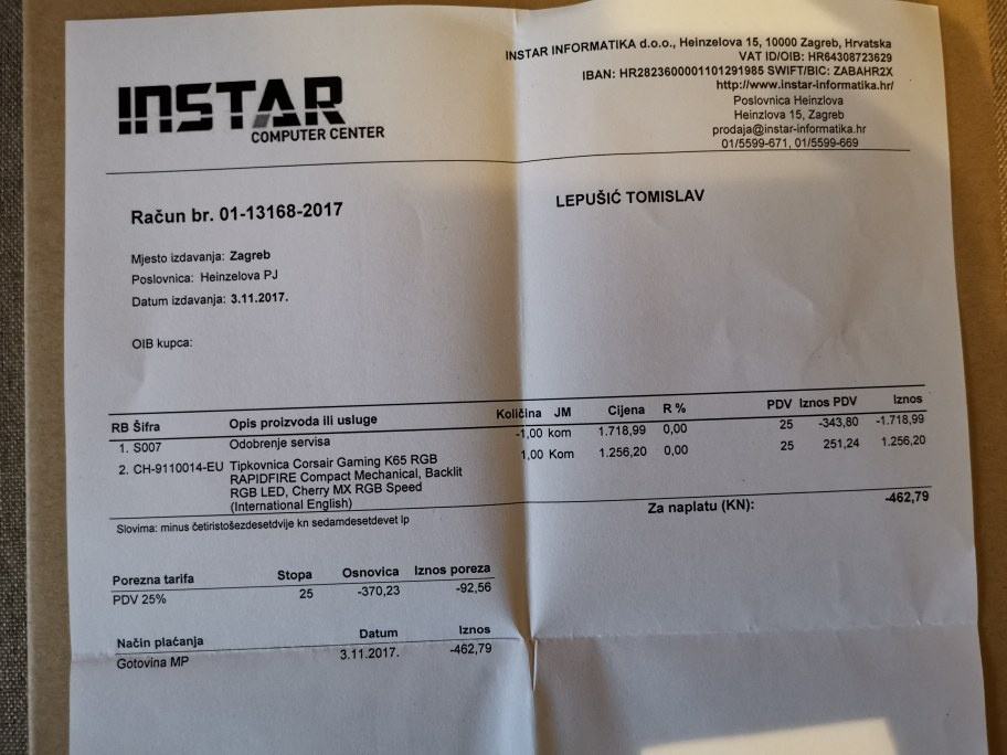 Razlog prodaje je što sam si kupio k70 mk 2 low profile tipkovnicu te mi je ova viška. Dostava na području zagreba, šaljem hp expressom uz vašu nadoplatu za isto.