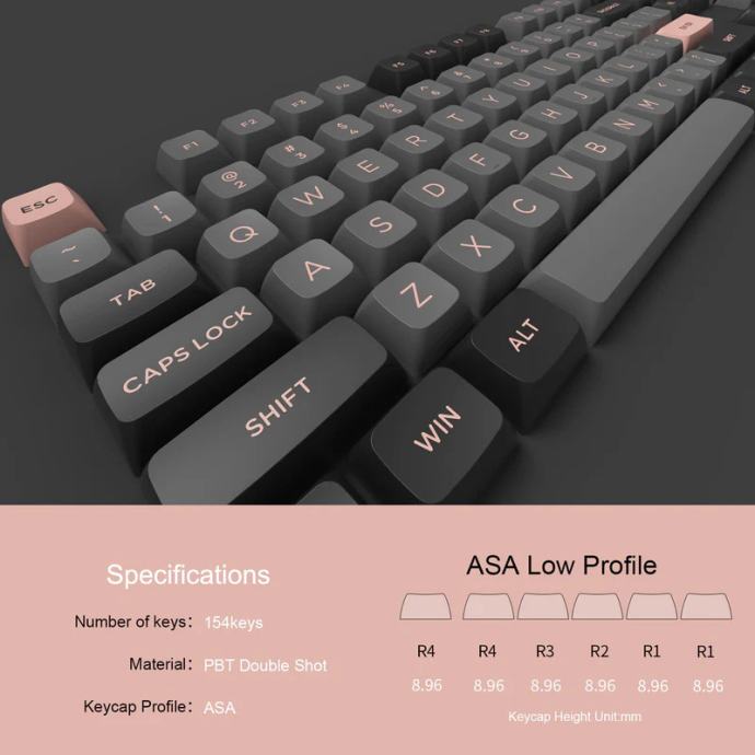 • Keycaps: AKKO Black & Pink Keycap Set ASA Low (155 tipki)