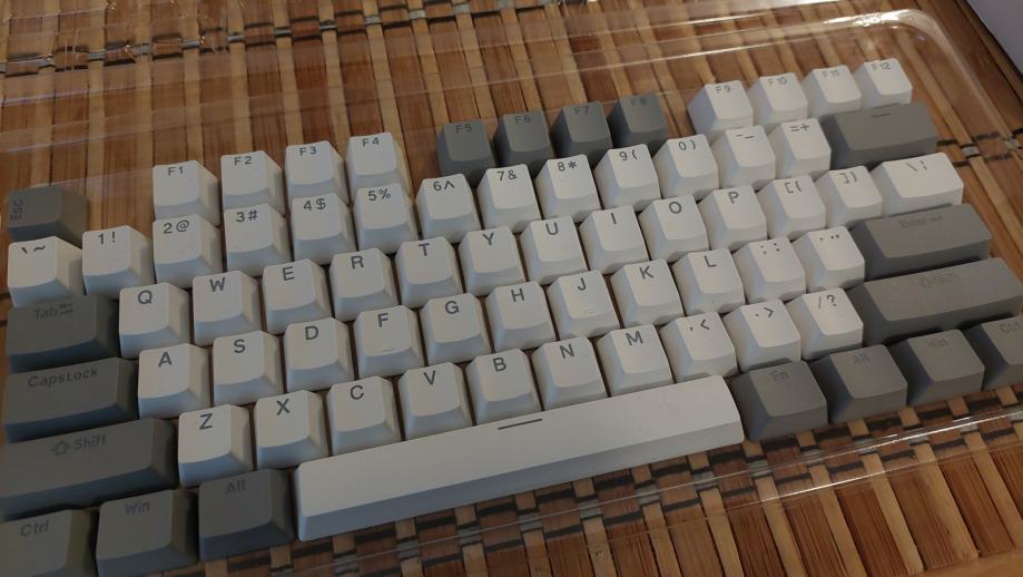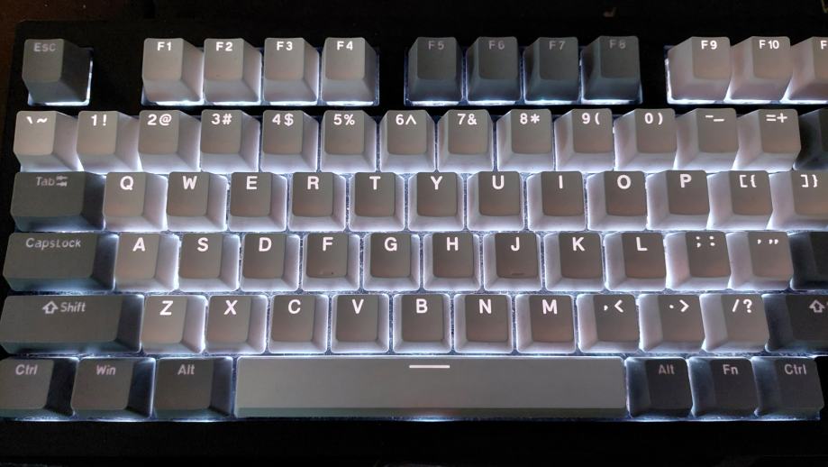 Double shot PBT konstrukcija sa poluprozirnim i difuziranim drugim slojem tako da svijetli kroz tipke ako imate led osvjetljenje, a opet full čitko ako ne koristite pozadinska osvjetljenja (kao što se vidi na slikama)
