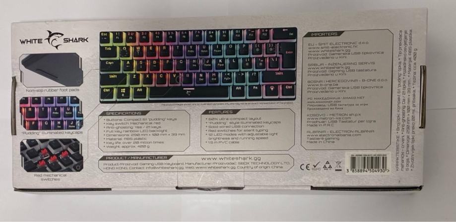Prodajem novu gaming tipkovnicu Ashiko White Shark. Tipkovnica je potpuno nova, neotvorena i dolazi u originalnom pakiranju. Tipkovnica ima RGB pozadinsko osvjetljenje s višebojnim efektima.
