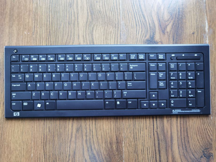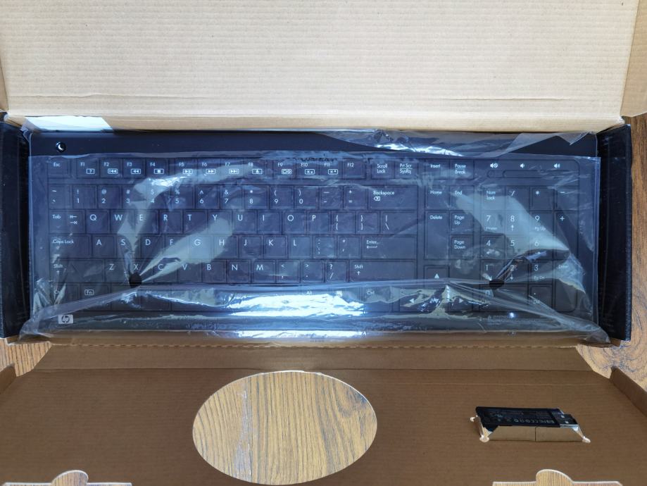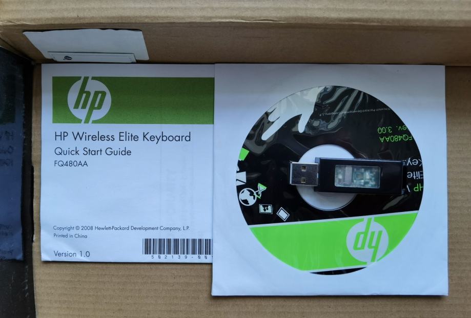 HP bežična tipkovnica je kratko korištena, očuvana i ispravna, zapakirana u tvorničko pakiranje sa USB prijemnikom, dvije nove AAA baterije i CD-om za instalaciju.