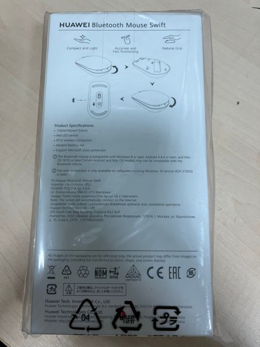 Huawei bežični Bluetooth miš Swift CD20 (crni) HUAWEI Bluetooth miš Vrhunski dizajn, precizno kretanje Udoban, izdržljiv dizajn Izdržljivi visokokvalitetni metalni dizajn udobno leži u vašoj ruci. Osjetljivi infracrveni senzor Unutarnji IR senzor radi s algoritmom za profesionalno uvježbavanje kako bi omogućio precizno kretanje i dovoljno je osjetljiv da se koristi na ravnim staklenim površinama.