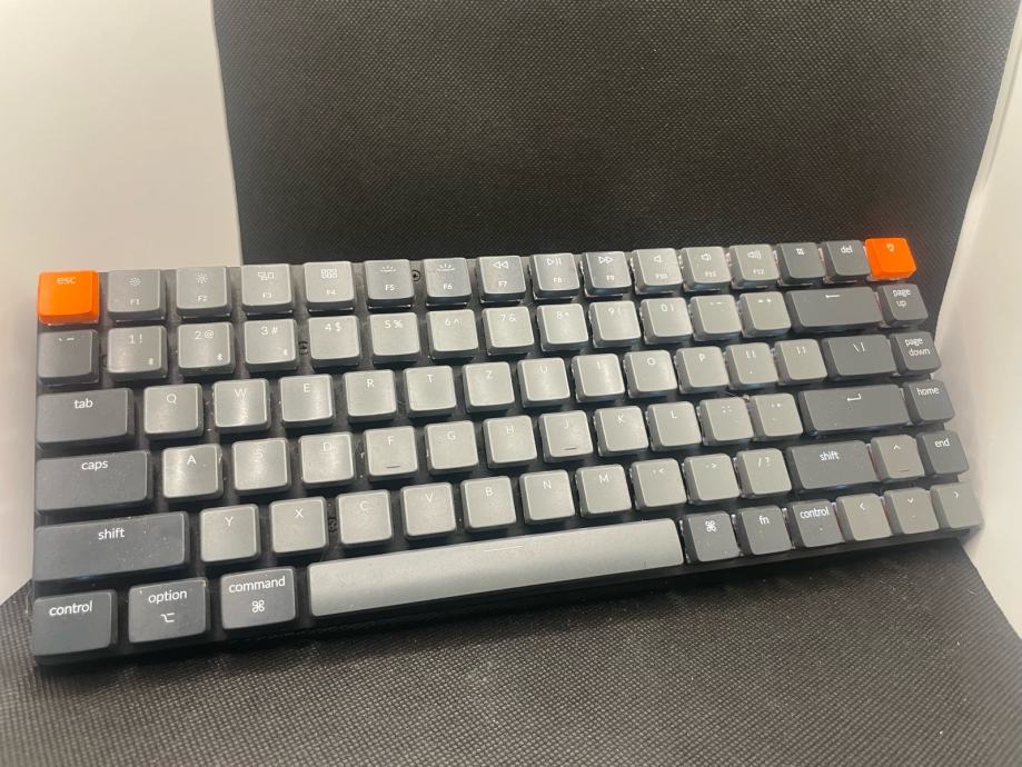 Prodajem rabljenu Keychron K3 tipkovnicu, minimalističkog dizajna s sivim tipkama i narančastim akcentima. Ova mehanička tipkovnica je kompaktna, niskoprofilna i idealna za rad ili gaming iskustvo.