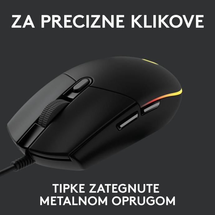 Logitech G102 LIGHTSYNC gaming miš ima klasični i bezvremenski dizajn sa 6 tipki, koji se može izravno koristiti izvan okvira ili u potpunosti konfigurirati za pojednostavljenje ili prilagodbu radnji. Gaming miš uključuje visoko precizni senzor s podesivim DPI-om do 8000 DPI-ja, pružajući najveću preciznost, brzinu i konzistentnost. G102 LIGHTSYNC uključuje paletu do 16.8 milijuna boja i različitih razina, što pruža mogućnost prikazivanja efekta osvjetljenja duginih boja.