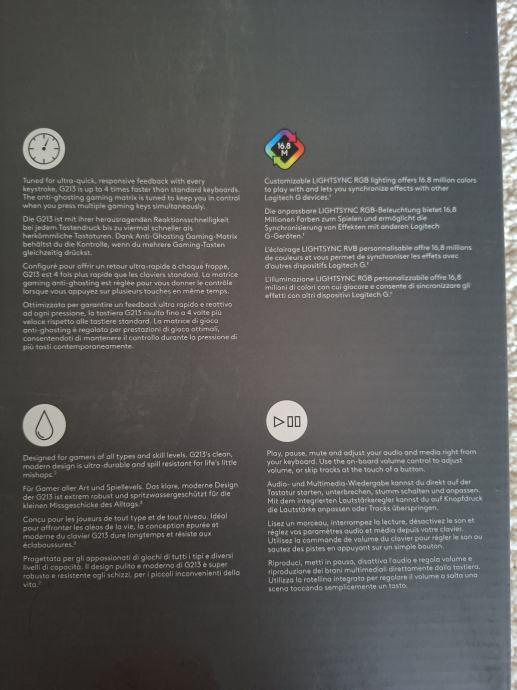Prodajem novu Logitech G213 gaming tipkovnicu u crnoj boji. Tipkovnica dolazi s RGB LIGHTSYNC osvjetljenjem koje podržava 16,8 milijuna boja i može se sinkronizirati s drugim Logitech G uređajima. Ima ugrađenu Anti-Ghosting Gaming Matrix tehnologiju koja osigurava preciznu registraciju svakog pritiska tipke, čak i kada se više tipki pritišće istovremeno. Dizajn je robustan i otporan na prolijevanje tekućine. Spojena je putem USB kabela. Potpuno nova, neotvorena.
