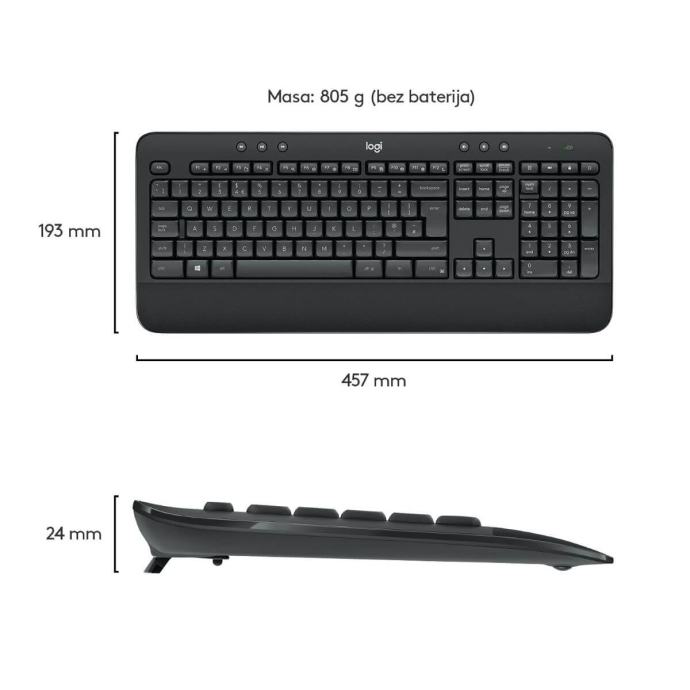 Dimenzije i masaTipkovnica: 457,3 (Š) x 193,5 (D) x 24 (V) mm, 654 g