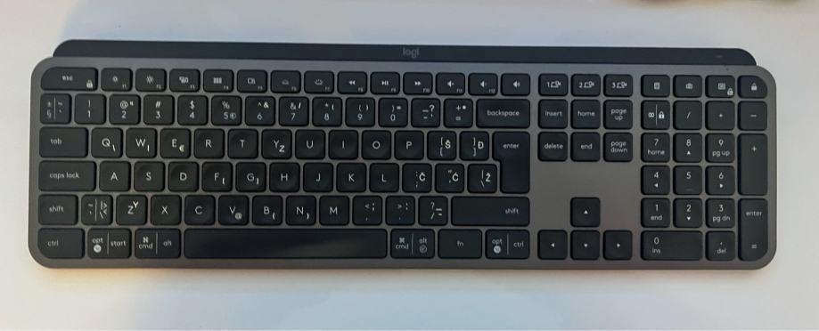 Prodajem rabljenu Logitech MX Keys Plus tipkovnicu u grafitnoj&crnoj boji. Radi se o premium bežičnoj tipkovnici s pozadinskim osvjetljenjem i punim rasporedom tipki uključujući numerički dio. Tipkovnica ima nizak profil s konkavnim tipkama koje osiguravaju udobno i precizno tipkanje. Ergonomski je dizajnirana za dugotrajno korištenje, s kvalitetnom izradom koja je karakteristična za Logitech MX seriju. Ova tipkovnica podržava povezivanje s više uređaja i kompatibilna je s Windows i macOS operativnim sustavima. Baterija dugo traje, a tipkovnica se puni putem USB-C priključka.