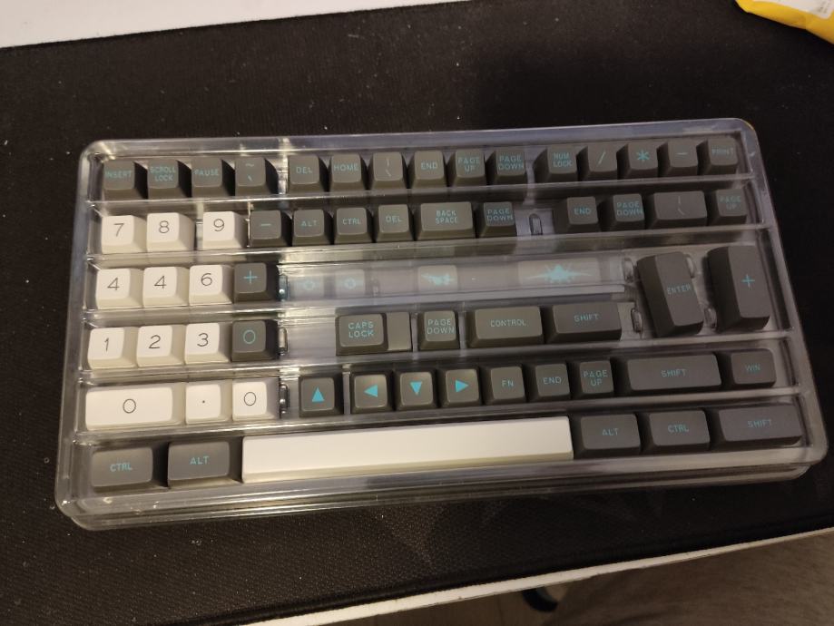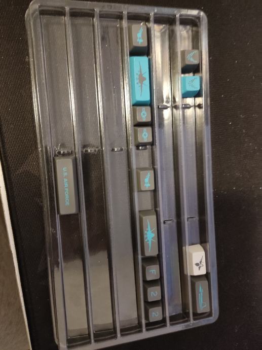 Prodajem Maxkey SA F22 keycap set. Set je korišten i ima jednu grešku koju nisam primjetio prilikom kupovine - na numpadu su dvije četvorke umjesto četvorke i petice. Cijena je korigirana za tu grešku i rabljenost keycapsa, inače odličan SA format set za custom tipkovnice. Dolazi u originalnim plastičnim trayevima, kako se i vidi na slikama.