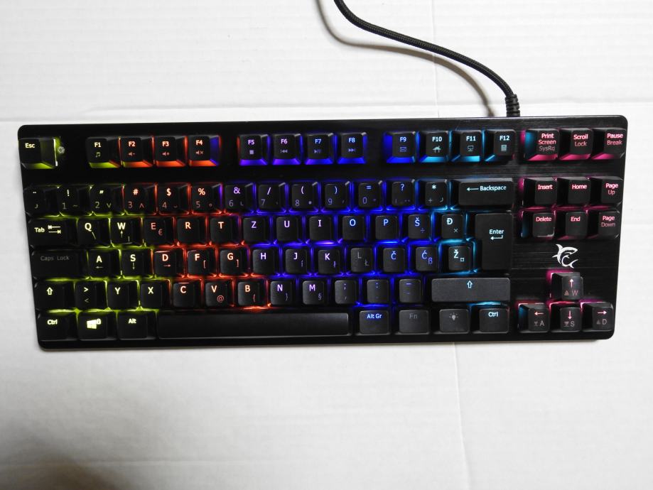 Prodajem mehaničku tipkovnicu s RGB pozadinskim osvjetljenjem. Tipkovnica ima njemački QWERTZ raspored tipki i USB priključak.