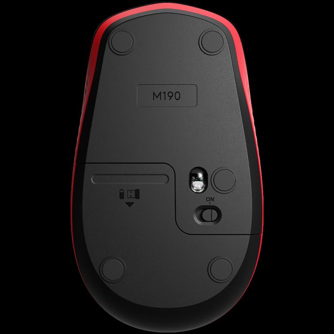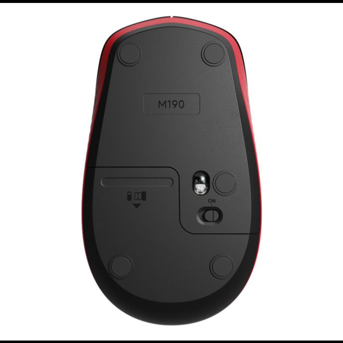 M190 crveni, Vrsta Bežično, Senzor Optički, Rezolucija 1000 dpi/cpi, Tipke 3 + scroll, Indikator baterije ne, Boja Crvena, Unifying receiver