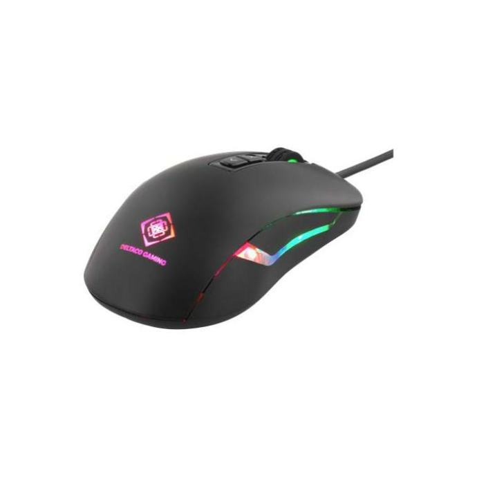 Deltaco gaming miš, žičani, USB konektor, Optički, DPI: 800/1200/1600/2000, 7 tipki (scroll uključen), LED osvjetljenje, 1,65 m USB kabel, podržava Windows 7/8/10, Mac OS 10.0+