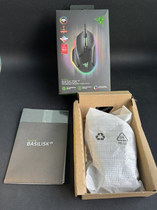 Prodajem žični gamerski miš: Razer Basilisk V3, gaming, 26000 DPI, RGB, crni. Uz to u ponudi je i Bungee Razer V3 za cable management.