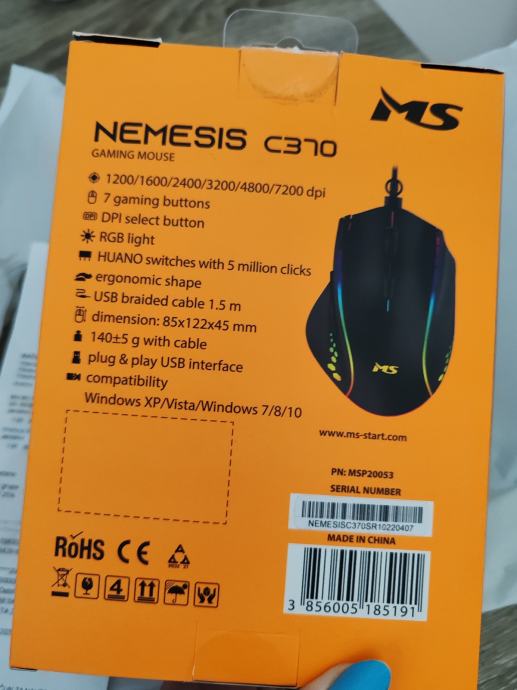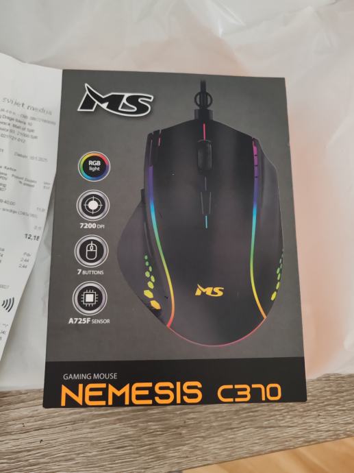 MS Nemesis C370, gaming miš, PC miš, RGB miš, 7200 DPI, 7 tipki, novi miš, miš s garancijom, gamerski miš, A725F senzor, računalni miš, miš za računalo, gaming oprema