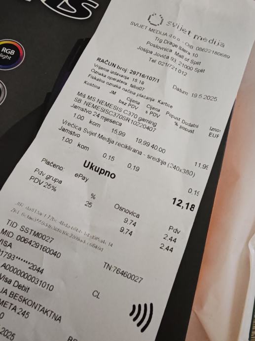 Uz miš dobivate: originalnu ambalažu, račun i garanciju
