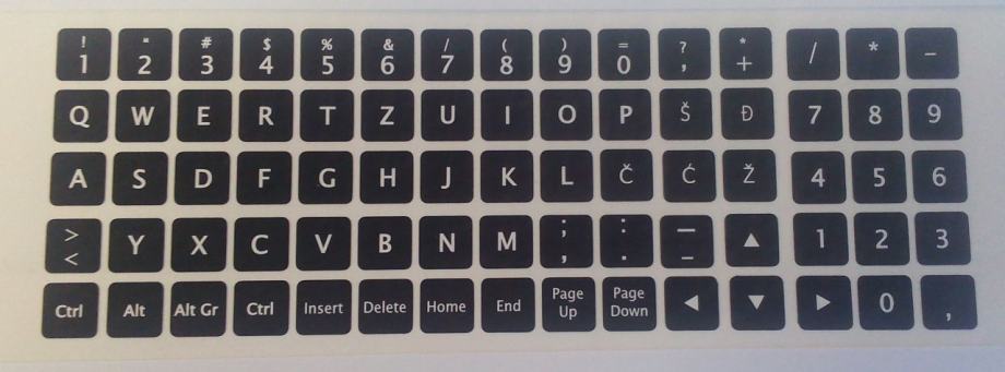 Komplet naljepnica za cijelu tipkovnicu kao na slici sa hr slovima.