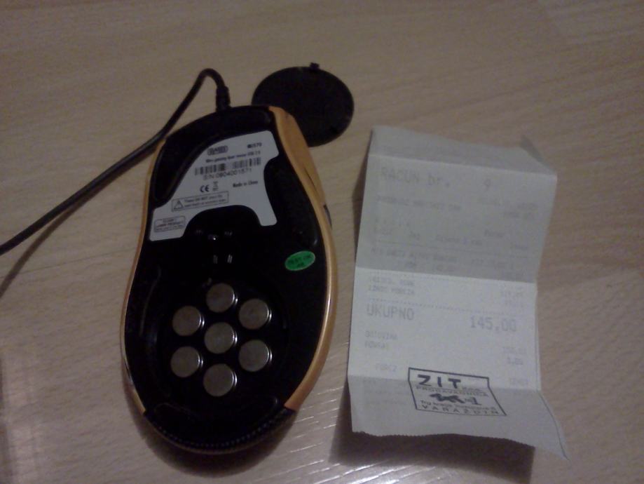 Garancija istekla u 6.mjesecu. Razlog prodaje: kupnja R.A.T. miša. Sa mišem dolaze sva pripadajuća oprema: utezi, CD, dodatni par slidera koji su ne korišteni jer trenutni su još uvijek u odličnom stanju.