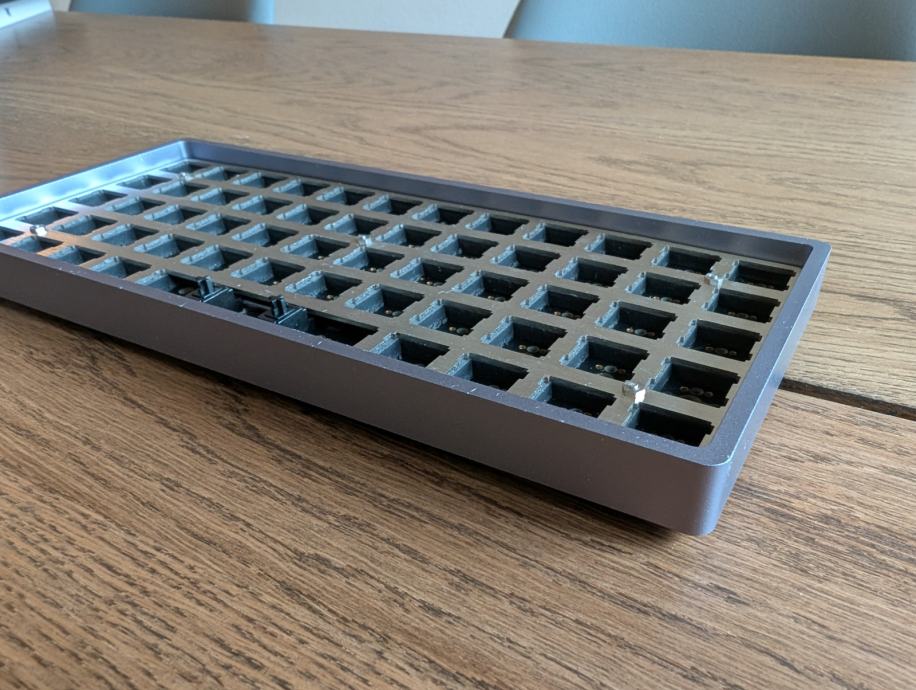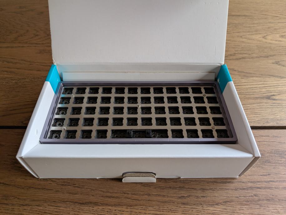 Ortolinearna mehanička tipkovnica. Dolazi bez switcheva i keycapova.