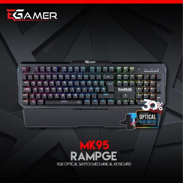 Mehanička tipkovnica EGAMER RAMPAGE serijom MK95 koristi najnoviju tehnologiju optičkog prekidača s infracrvenim senzorom koji daje najbrži odaziv ikada s nultim odzivom i nultom pogreškom. Mehanicka Gaming Tipkovnica