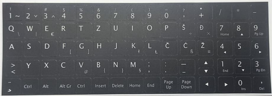 Komplet naljepnica za cijelu tipkovnicu kao na slici sa hr slovima.
