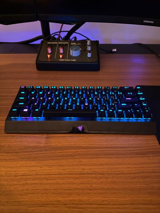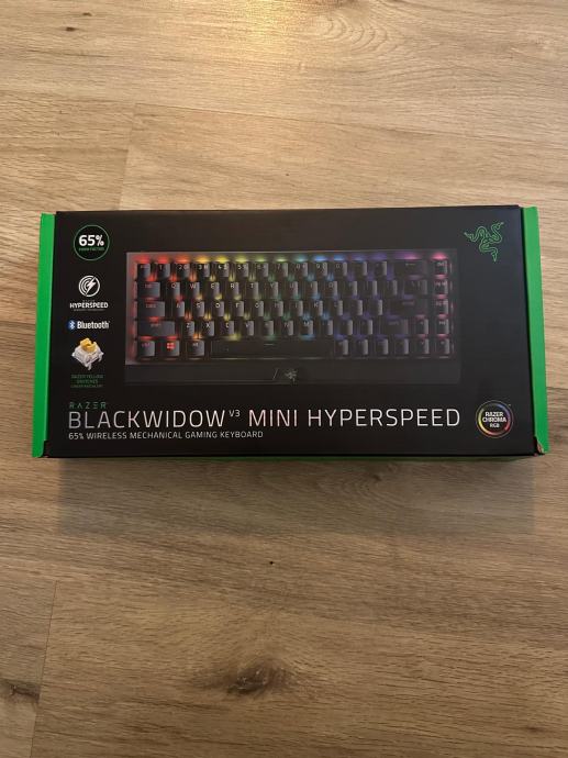 Prodajem bežičnu mehaničku tipkovnicu Razer BlackWidow V3 Mini HyperSpeed. Tipkovnica je kupljena prije 2 godine, vizualno je u dobrom stanju i dolazi s originalnom kutijom, dokumentacijom i originalnim Razer pletenim USB-C kabelom za punjenje i žičano korištenje.